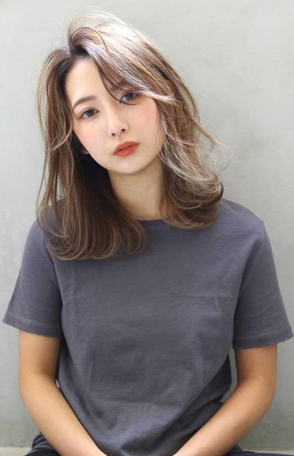 【ミディアム系】30代におすすめの涼しげな髪型④ベージュ系ハイライトでツヤ感プラス