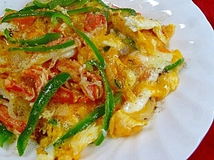ピーマンたっぷり♪ ふわっふわ「かに玉」