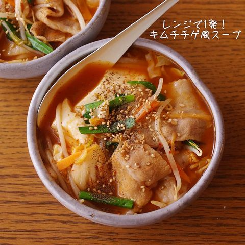 レンジで簡単キムチチゲ風スープレシピ