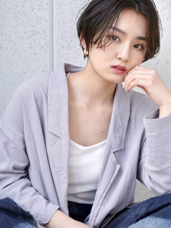 ふんわり動く髪の毛がおしゃれで、ストレートのショートよりもグッと軽やかな印象に。暗髪なのに、すっきり爽やかなショートなので夏におすすめの髪型です。