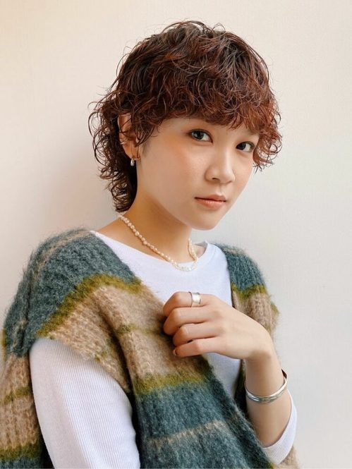 マッシュショートは個性的になりがちですが、ニュアンスパーマで女性らしい柔らかさをプラスしてマイルドにするのが大人っぽく可愛いですよ。