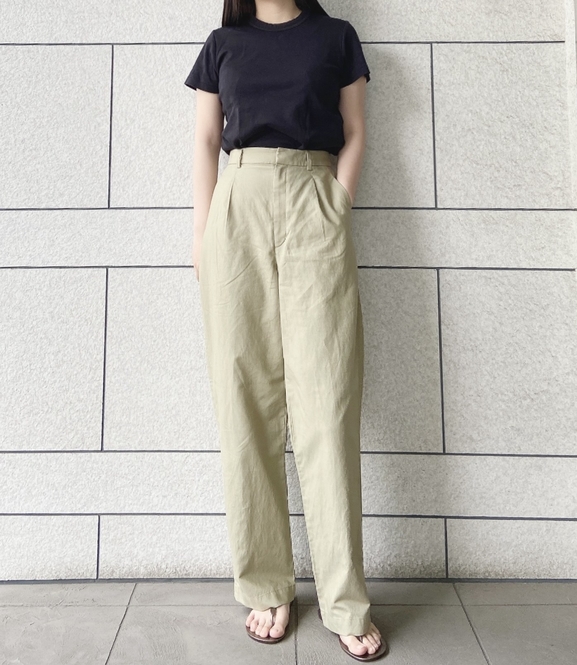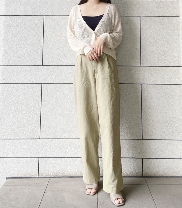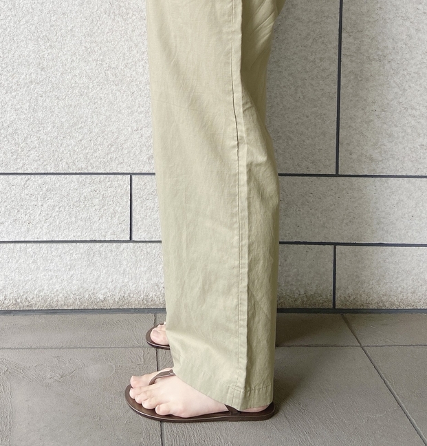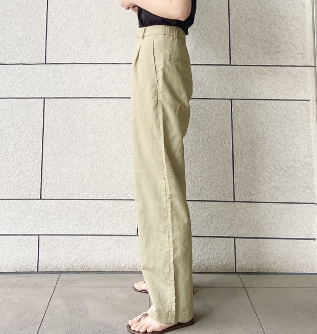 それがこちら「リネンブレンドタックワイドパンツ(丈長め72~74cm)」です!