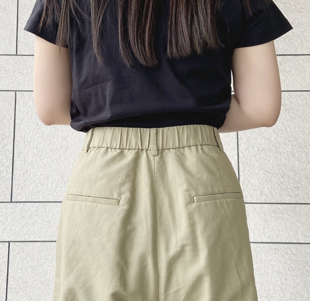うしろはゴム仕様。伸縮性があって快適です。