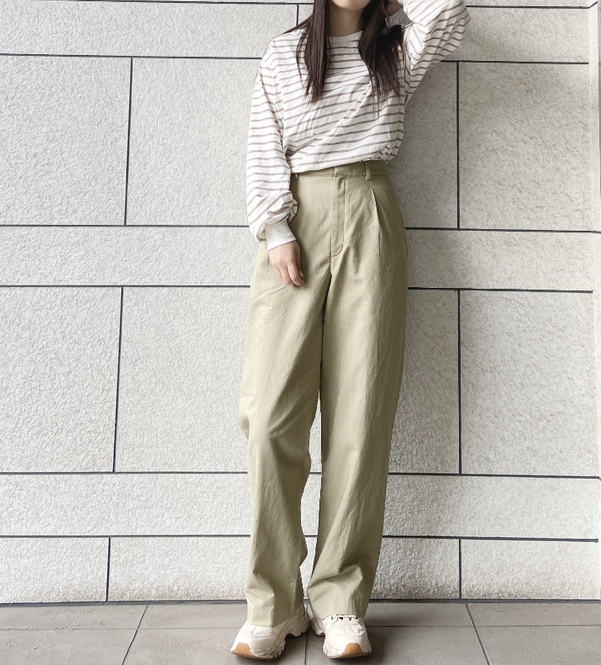 すとんと落ちるワイドストレートなシルエットが素敵。