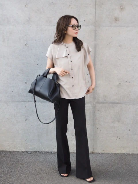 白のブラウスにカラーパンツを合わせれば、トレンドも押さえたおしゃれなコーデに仕上がります。
