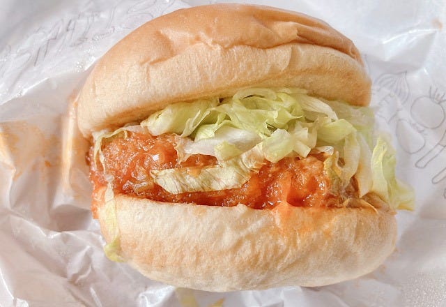 モスバーガーの新商品「海老チリ風バーガー」はぷりぷりの海老カツに、海老チリ風ソースがからんで絶品でした。