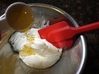 水切りしたヨーグルトにはちみつを加えてよく混ぜます。