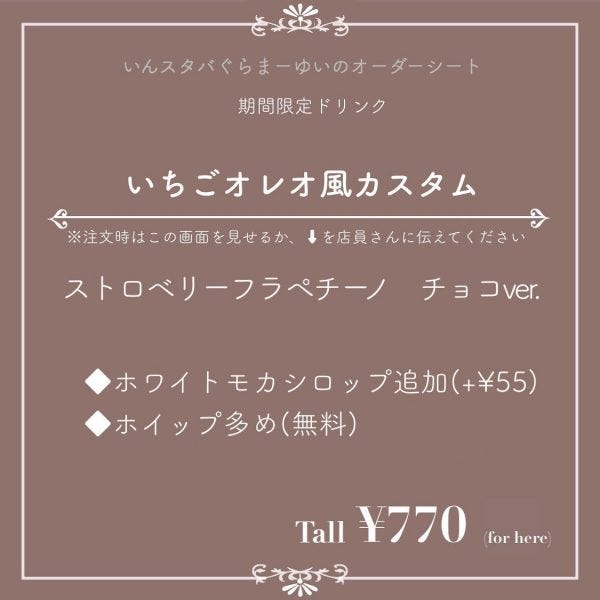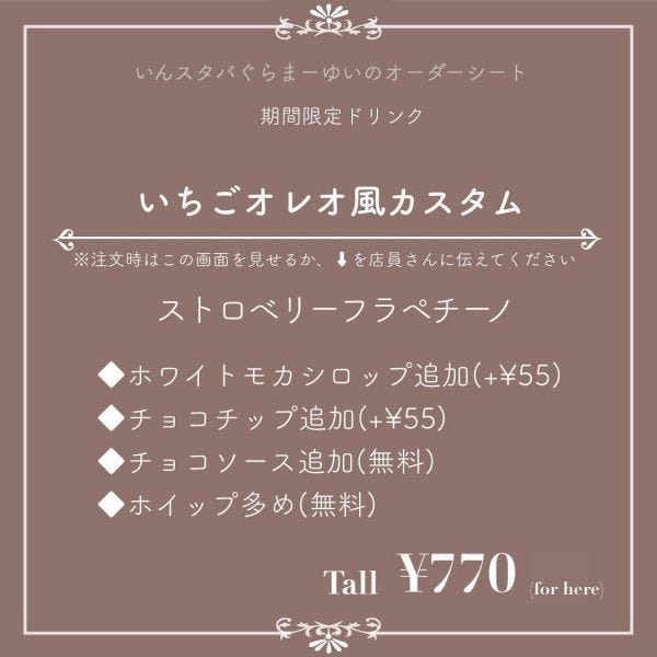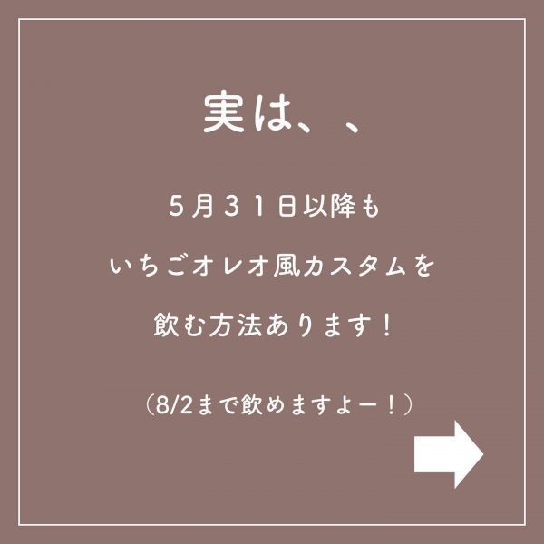 販売が終了する5/31以降も、いちごオレオ風カスタムを飲む方法があります♪
