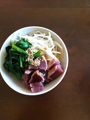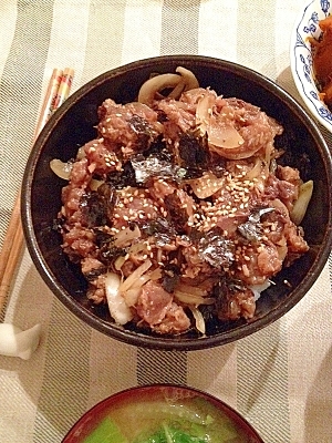 ピり辛ポンマヨ☆漬けカツオのたたき丼