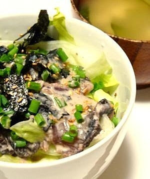 蒲焼のたれで キャベツとカツオのたたき丼