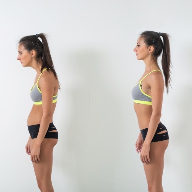 例えば「猫背」の姿勢になると、心臓や肺などを取り囲んでいるカゴ状の組織である「胸郭」が落ち込んでしまうため、腹筋群が緩んだ状態となってしまいます。