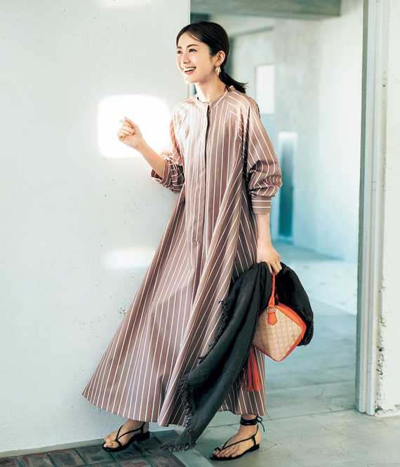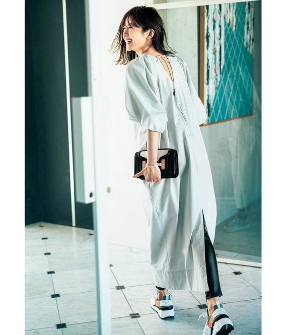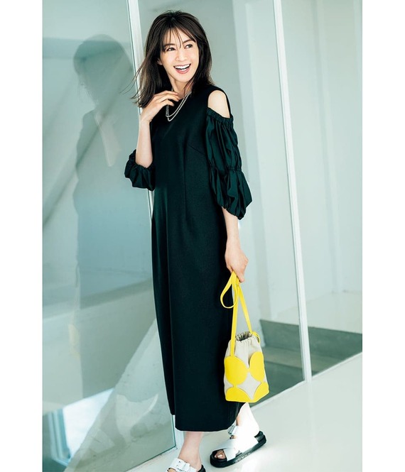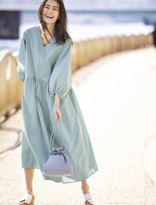 ワンピース¥19,800(ヴェルソー/ジオン商事)バッグ¥31,900(ヴィオラドーロ/ピーチ)サンダル¥81,400(フリーランス/ストックマン)バングル¥18,700(ワンエーアールバイウノアエレ/ウノアエレ ジャパン)
