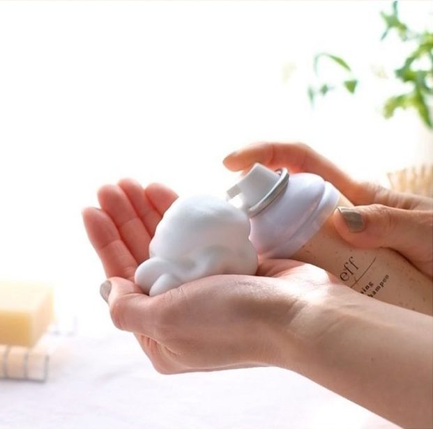 髪全体を濡らした後、髪に直接つけて根元から毛先までを滑らせるようにするか、手で泡立ててから髪へ。泡で頭皮と髪をマッサージするようにして洗い、ぬるま湯でよく洗い流します。