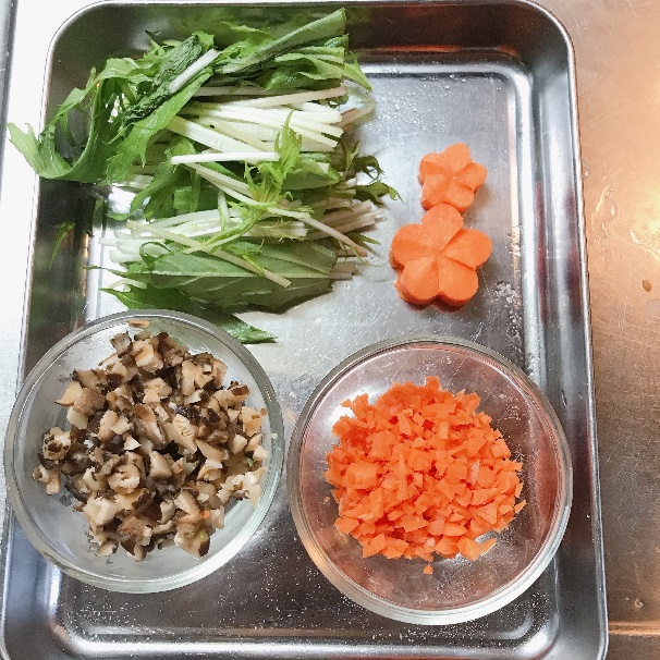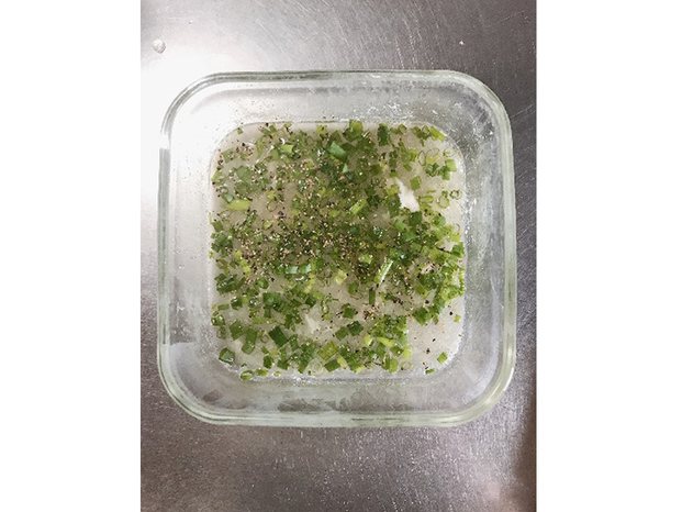 これらを耐熱容器に入れてラップをせず、600Wで1分加熱する。