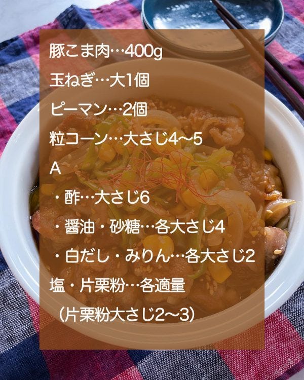 豚こま肉で作るコーン入り南蛮漬けのレシピ
