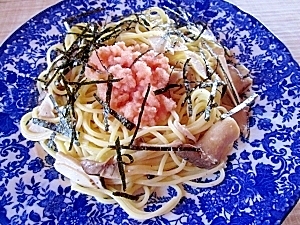 楽天レシピ:「きのこ入り明太子スパゲッティ 」より