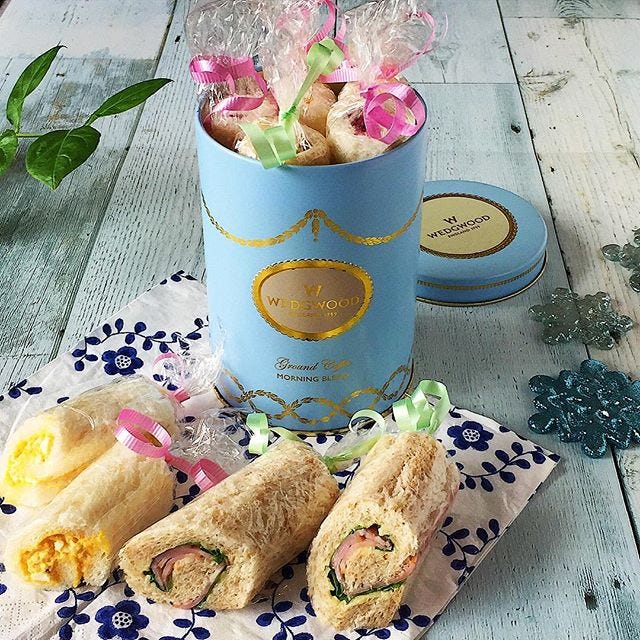 ロール型サンドイッチは、ラッピングもしやすくて食べやすいので、ピクニックのお弁当におすすめ。可愛い缶があればぜひ活用してみましょう。