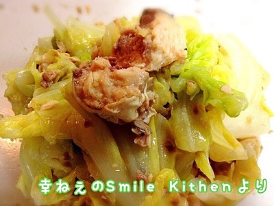 楽天レシピ:「鮭缶&ルクエで、キャベツと鮭のマヨチーズ蒸し 」より