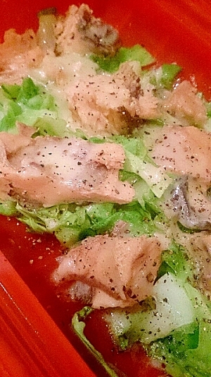 鮭缶&ルクエで、キャベツと鮭のマヨチーズ蒸し