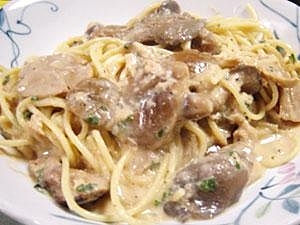 楽天レシピ:「鮭缶ときのこミックスで!鮭ときのこのクリームパスタ 」より