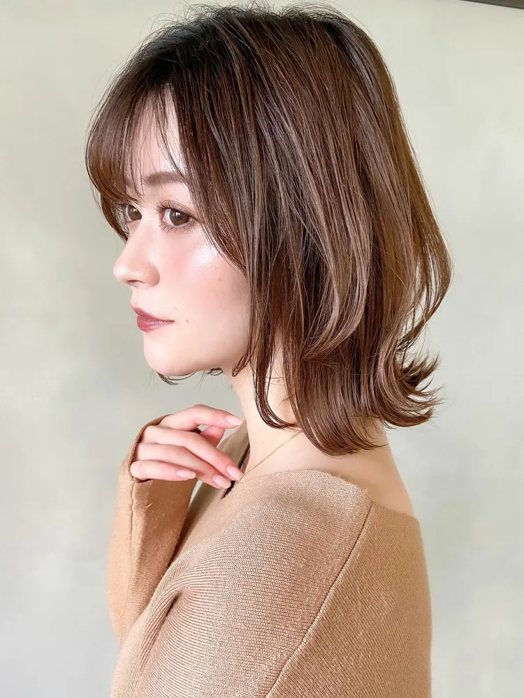 レイヤーを入れる位置を毛先に近きくすることで全体に丸みのある頭の形がきれいに見えるフォルムが、パーマや特別なスタイリングなしでも作れます。