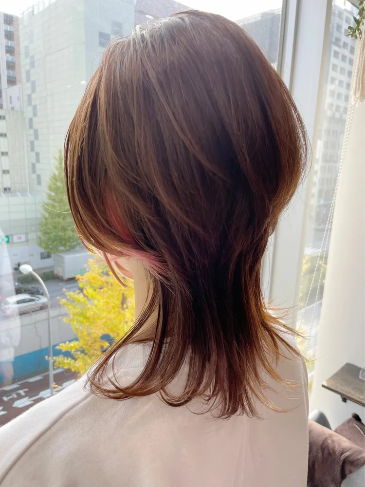 インナーカラーもおしゃれなハッシュカット