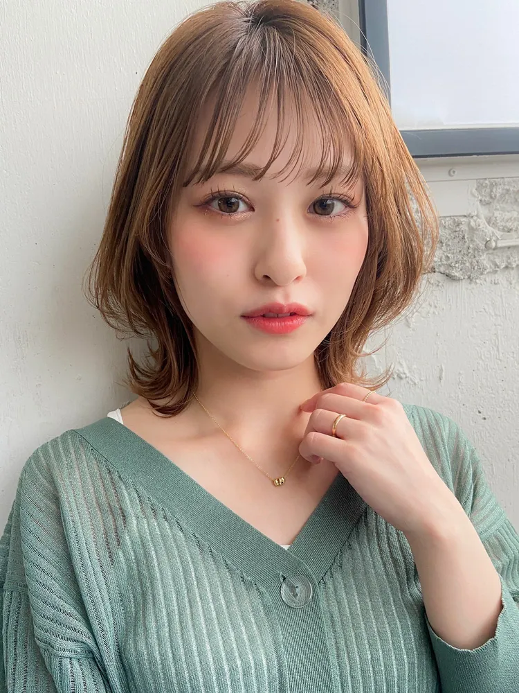少し明るめのヘアカラーも重さのあるハッシュカットなら落ち着いた雰囲気ですね。