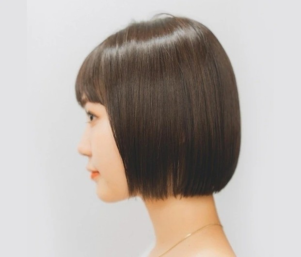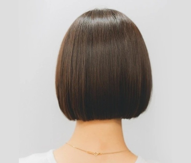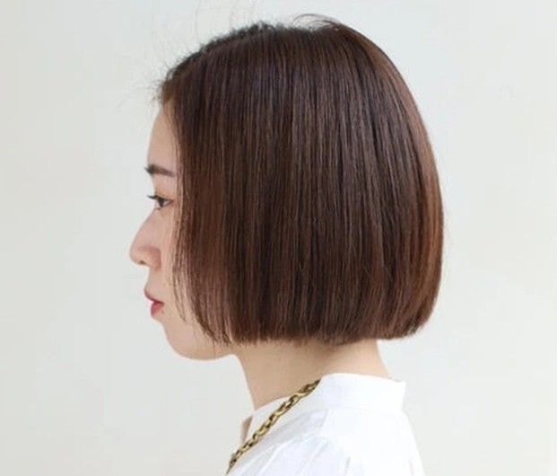 ツヤを放つサラサラのストレートヘアなら、女性らしく上品な雰囲気に仕上がる。ストレートパーマは、アルカリを使わない酸性域の薬剤を使用することで、まっすぐになりすぎず、“柔らかな地毛風ストレートヘア”が実現。毛先のダメージ部分にはトリートメントを塗り分けて、ツヤ感をアップ。カットは、髪全体に厚みを残し、やや前上がりに。ローレイヤーでうねりや広がりを抑えて、まとまりのよさを表現して。頬から顔まわりにかけて、流れるような毛流れをつくれば、表情を明るく見せながら小顔効果も◎。