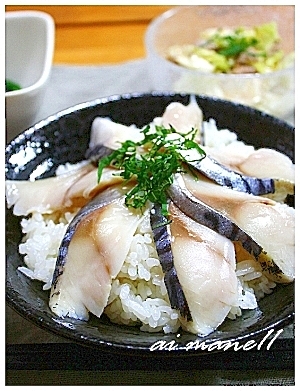 しめサバだけだと量が少ないという時は、どんぶりにしちゃいましょう。酢の酸味と大葉の爽やかな風味で、ご飯が進みますよ。これからの暑い季節にさっぱり食べることが出来ます。
