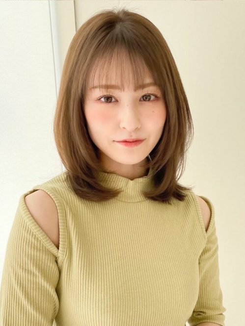 少しだけ変わった前髪ありミディアムにしたいという30代の大人女性の方は、短め前髪もおすすめです。