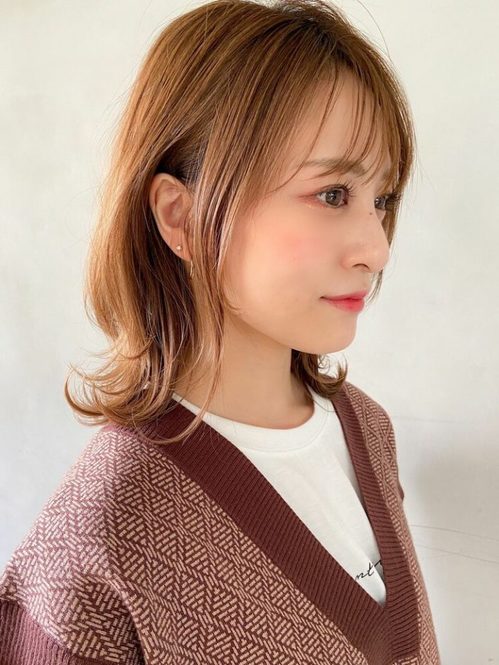 カラーもトーンが高いものにすると派手になってしまいますが、落ち着いたカラーのものを選べば30代の大人女性にも似合う前髪ありミディアムの完成です。