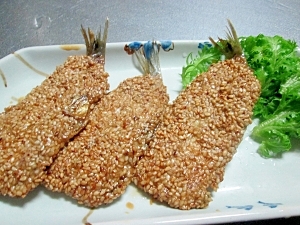 ごまの香りとプチプチ歯ごたえが美味しいいわしのごま焼きです。