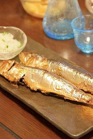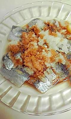 そのままでも十分おいしい脂ののった新鮮なイワシに大根おろしをたっぷりとかけていただきます♡