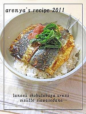 楽天レシピ:「梅しそでアクセント♪鰯のかば焼き丼 」より
