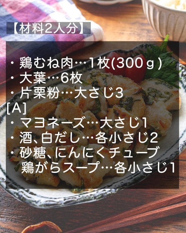 今回は「鶏むね肉と大葉の塩マヨチキン」をご紹介します。