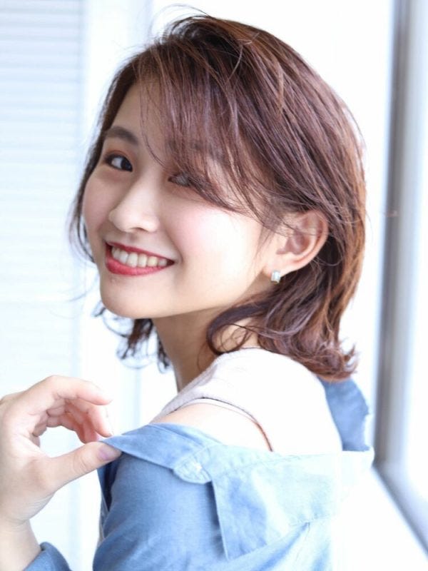 くせ毛で髪が広がる場合でも、前髪は軽めにしておくことで顔まわりは重くなりすぎず、おしゃれでバランスが取れたミディアムの髪型になります。