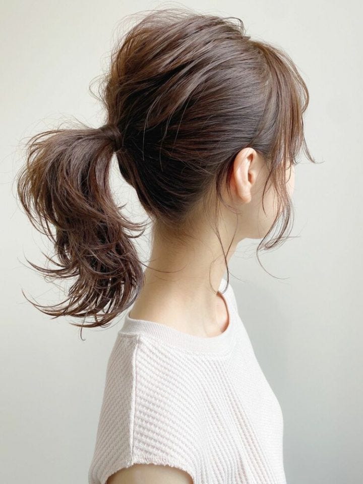 シンプルな髪型ですがほぐしてラフさを出してあげることで大人女性にも似合う大人っぽい仕上がりとなり、おしゃれで目を引く髪型となります。
