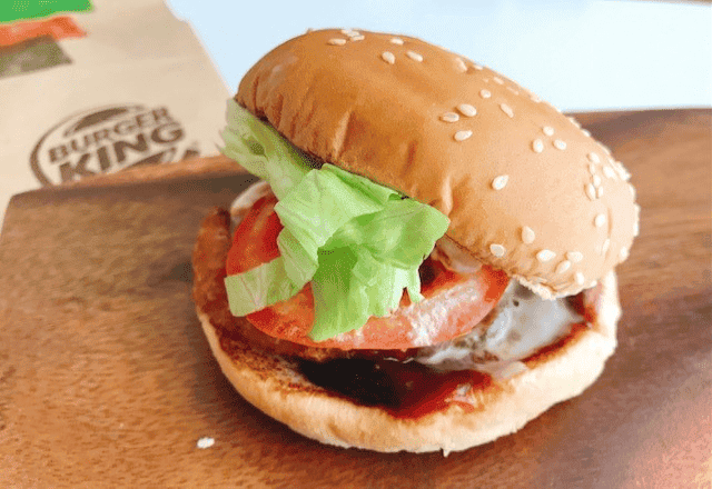 中にはレタス、トマト、ピクルス、オニオンリング、ビーフパティが入っています。