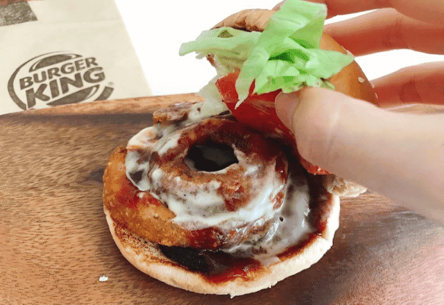 オニオンリングはビーフパティの上に丸ごと入っていました。