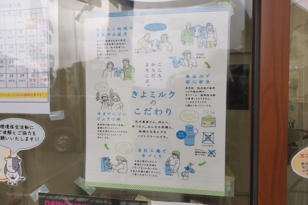 しかし、二本松市にも良質な牛乳を生産する酪農家はおり、その生乳を使用したソフトクリームを販売しているのが、二本松市南部・JR杉田駅からほど近い場所にある「きよミルク工場直売所」である。