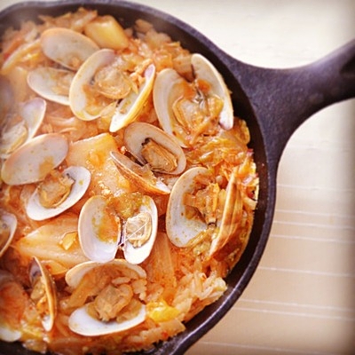 辛子明太子とキムチのピリ辛おひとりさまパエリア