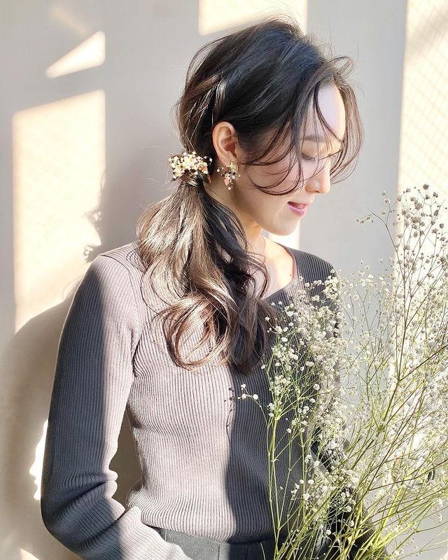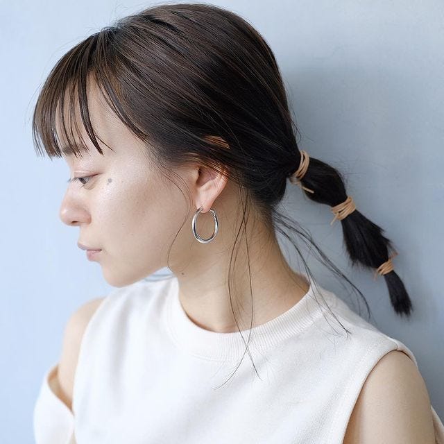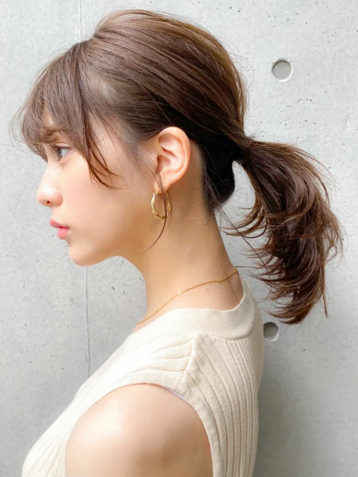 低めの位置でポニーテールにしているので、ナチュラルな無造作感が出るので、少し崩れてしまっても垢抜けた印象がプラスできます。