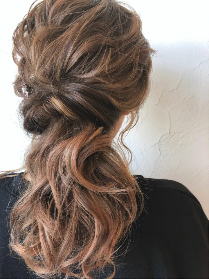 こちらもセミロングですが、ロングヘアならボリューム感が出てさらに華やかになりますよ。
