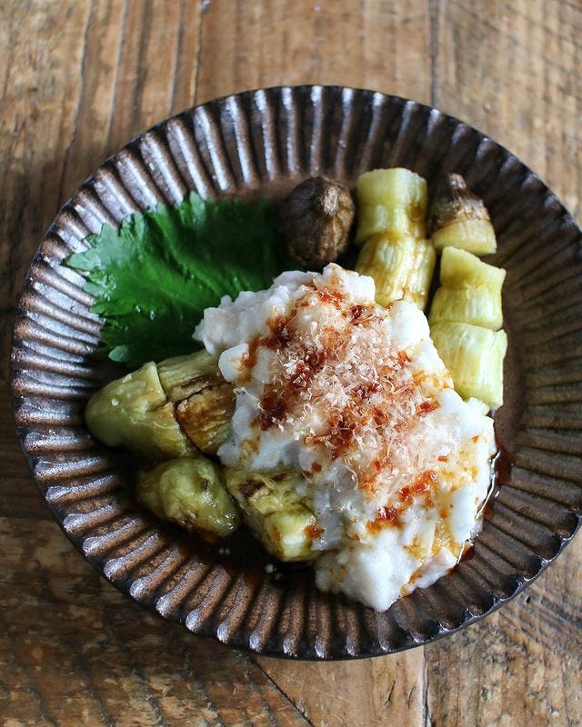 まだ暑い9月の献立には焼きなすのとろろかけ