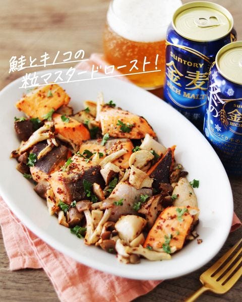 9月が旬の鮭ときのこの粒マスタードロースト
