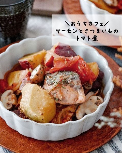 9月を感じるサーモンとさつまいものトマト煮