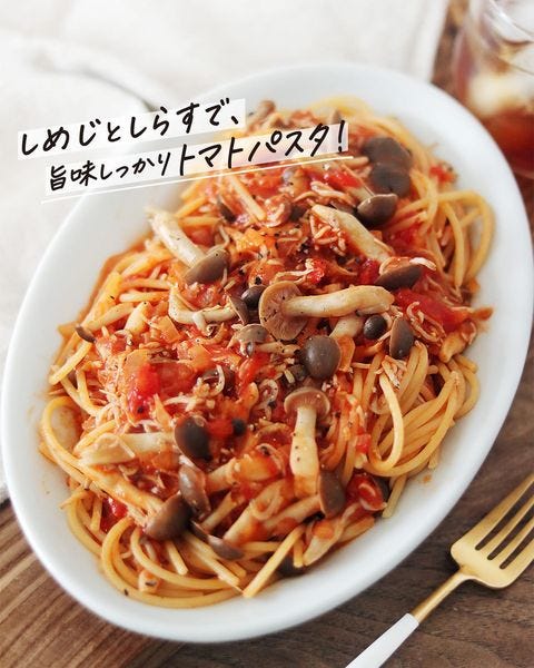 9月も美味しいしらすとしめじのトマトパスタ