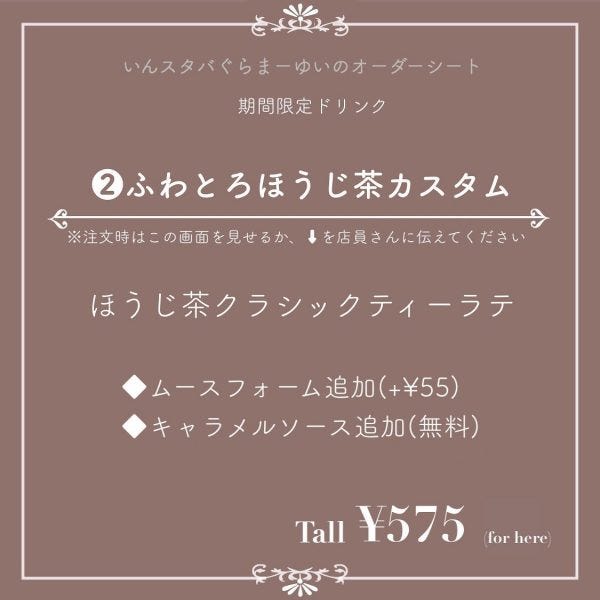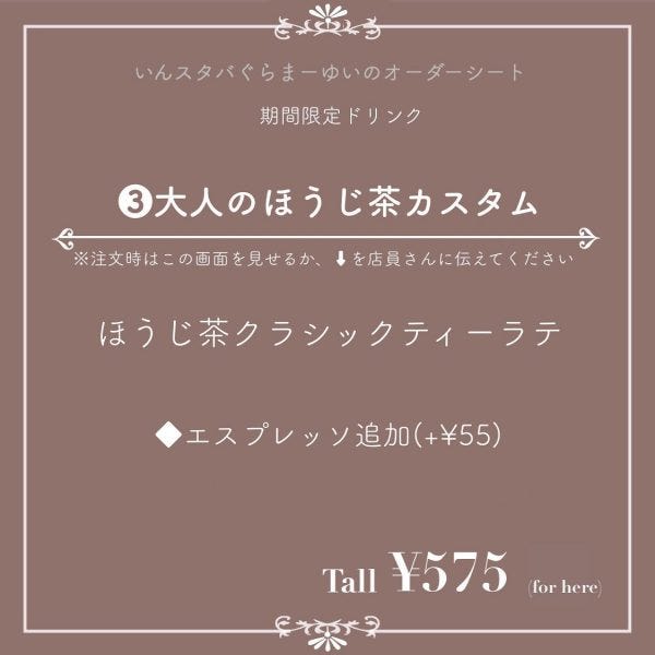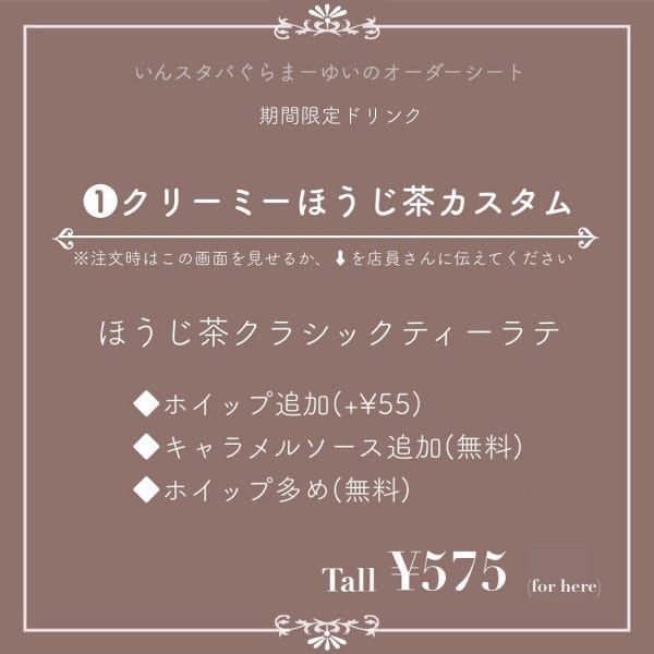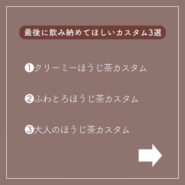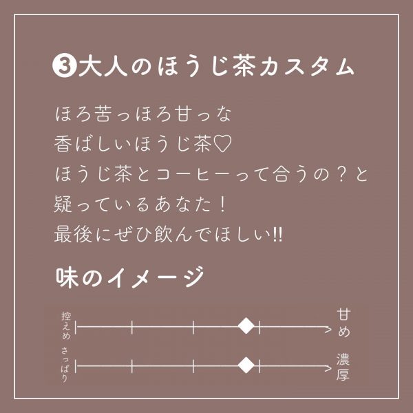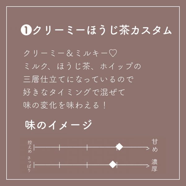 「ほろ苦っ&ほろ甘っ」な香ばしいほうじ茶カスタムです。