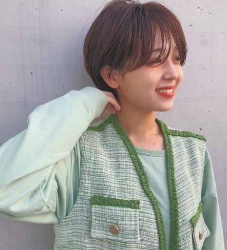 おしゃれで似合わせやすいと人気の丸みシルエットのショートヘアは“顔周りを優しく包み込む前髪”を合わせると細見え効果抜群です。