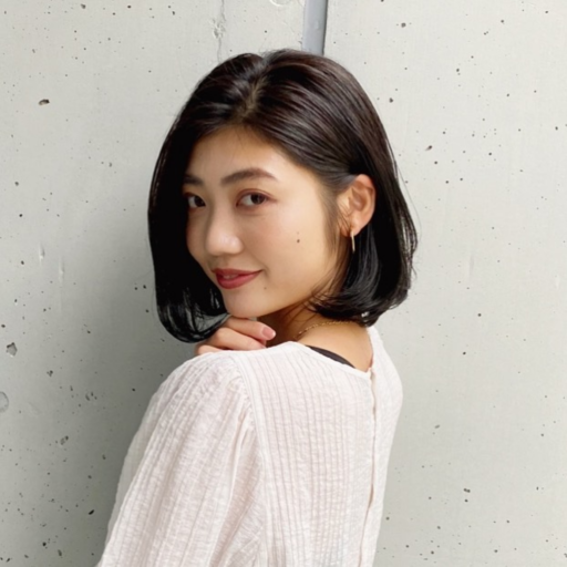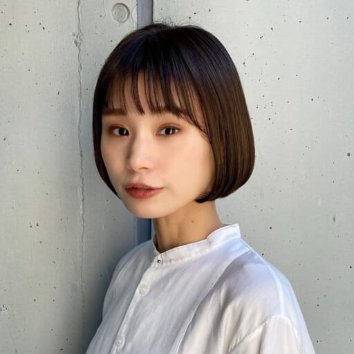 ちゅるんとした印象のボブは内巻きスタイリングでちょうどあごのラインにカールをプラス。それだけで毛先のまとまり感による縦長効果を得られます。また、前髪を気持ち厚めに残すと、視覚効果によって顔の長さを強調でき、顔幅の広さを打ち消すことができるでしょう。